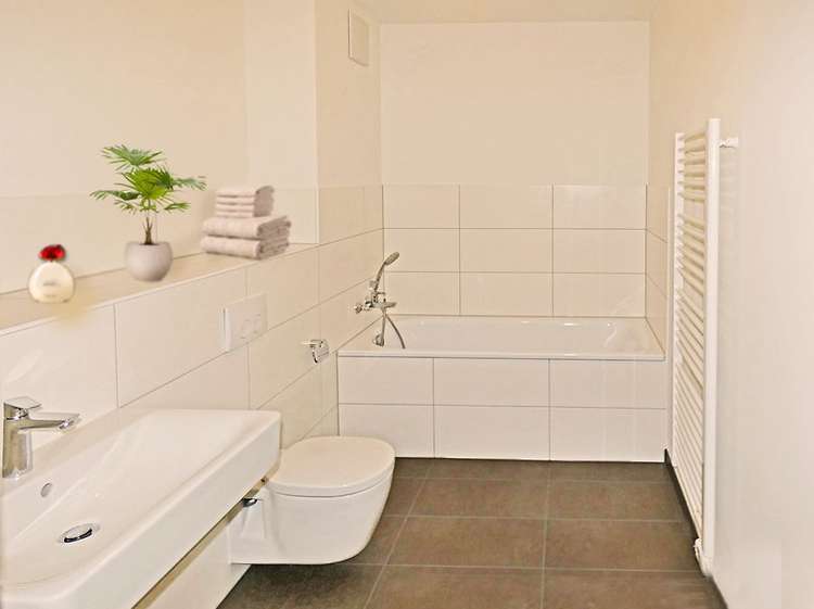 • Hochwertig ausgestattetes Wannenbad