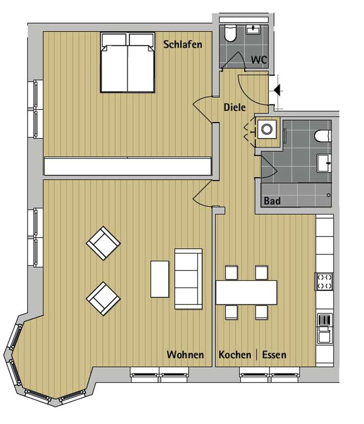 - Großzügiger Wohnraum mit wunderschönem Erkerbereich