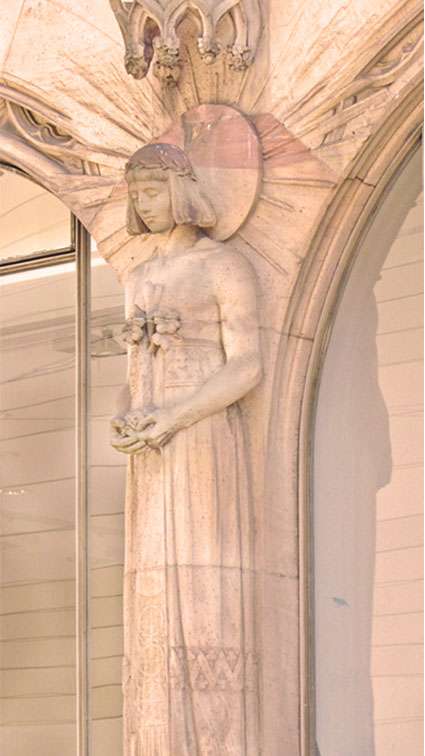 Das repräsentatives Eckgebäude mit reichem bauplastischem Schmuck wurde im neogotischen Stil im Jahre 1901 errichtet.