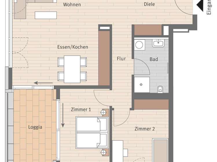 Die auf den Fotos gezeigten Einrichtungsgegenstände dienen nur der Illustration und gehören nicht zur Mietwohnung.