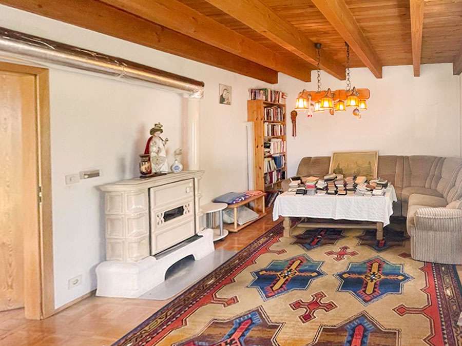- Wohnbereich mit elektrischer Heizung und gemütlichem Kachelofen